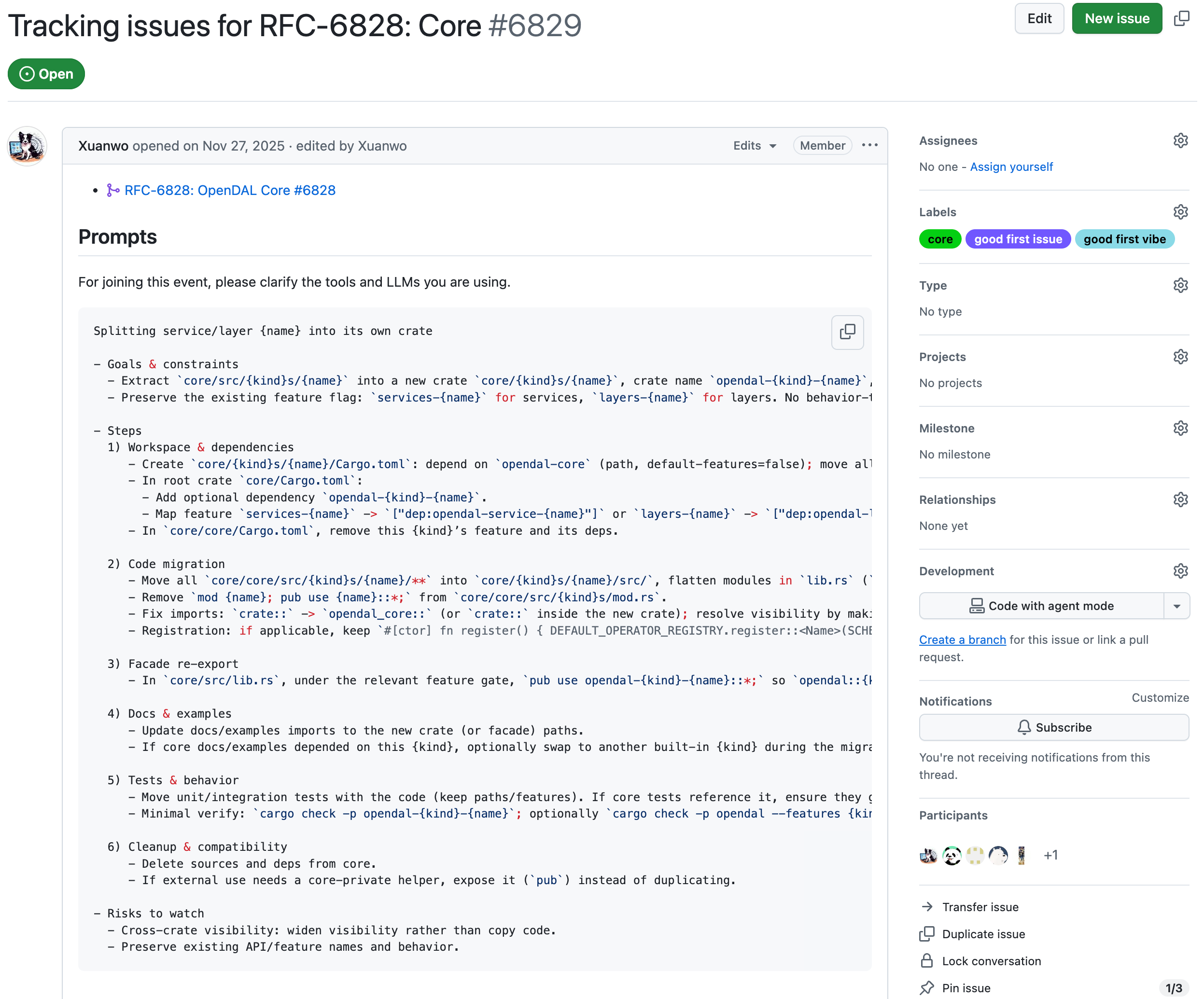 如果知识库知识不足,只能靠 fine tune / skills / prompt 来救一救了。例如,Xuanwo 在 OpenDAL 里搞大模型能力竞赛,鼓励贡献者直接利用大模型参与拆分 services/layers 工作的时候,也得自己先做一遍示范,然后给出一个参考提示词,其他贡献者才能拿着提示词转自己的 token 去解决问题。直接让大模型闭眼睛实现,那很容易就过拟合一些乱七八糟的通解偏到不知道哪里去了。
