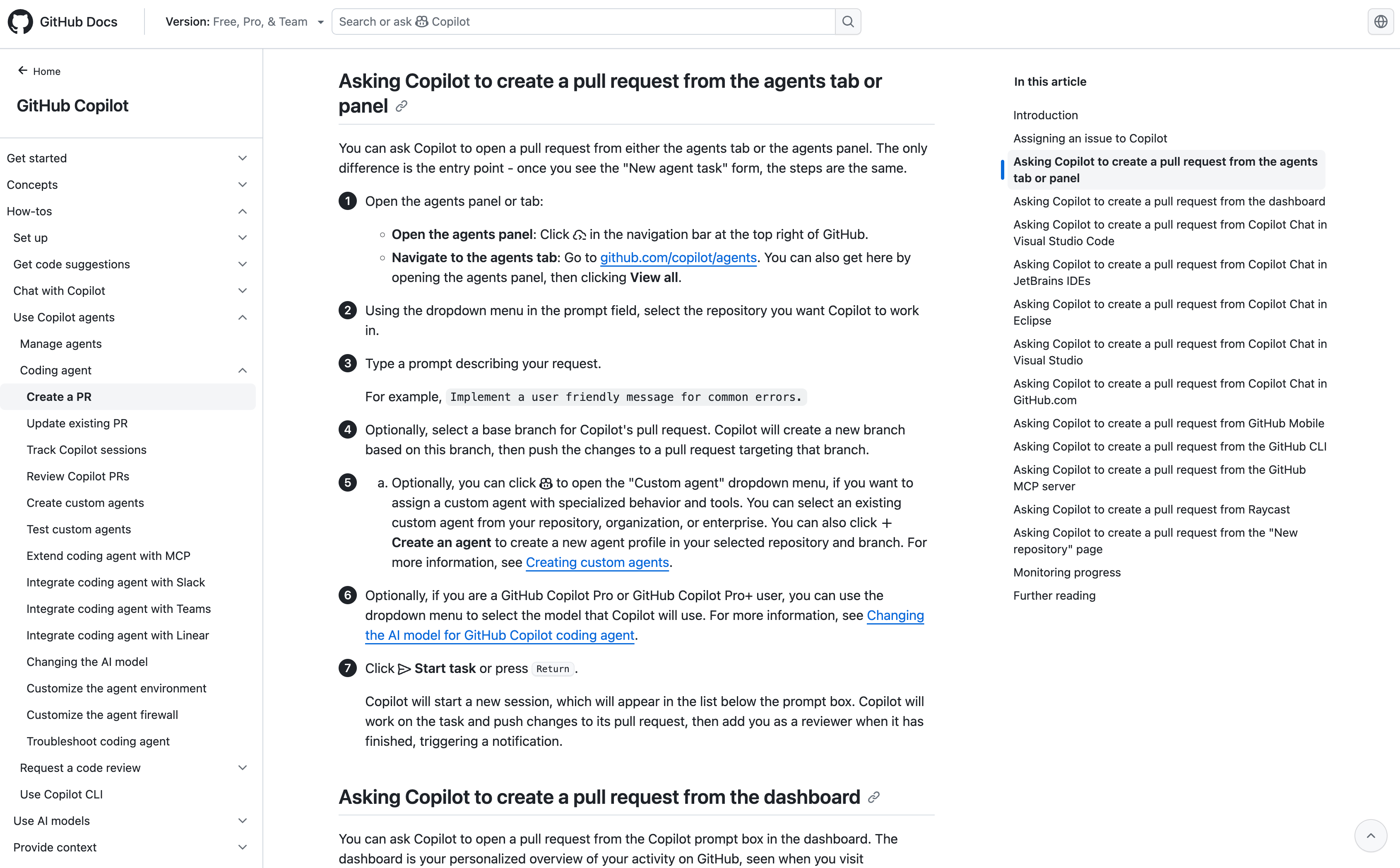 GitHub Copilot 支持页面直接驱动 Agent 编码并提交 Pull Request